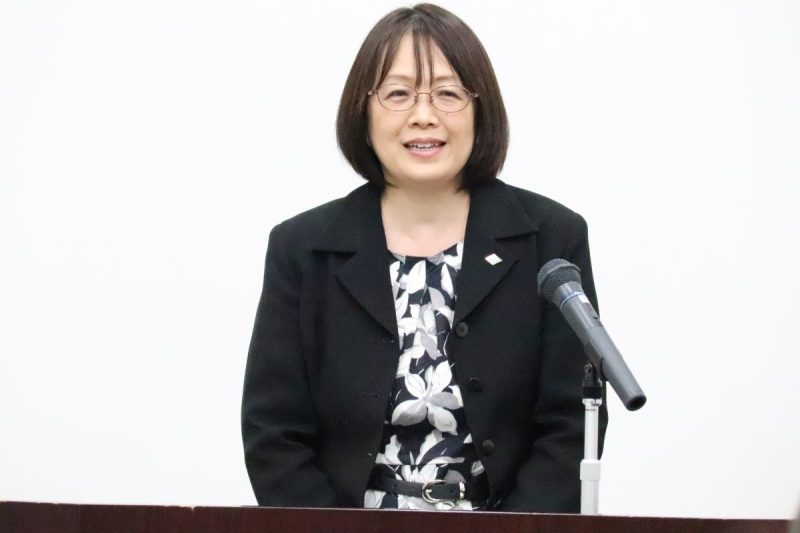 式では、中村和彦学長が「受講される皆様方には、ご自身の可能性に気づき、学ぶことの本来の面白さを体験し、今後の成長につなげてほしい」と式辞を述べました。続いて、山岸ゆり山梨県多様性・働き方統括官から「性別に関係なく、一人ひとりが自分らしい生活を実現できる社会へ向け、皆様がその推進力となることを期待している」と祝辞を述べ、受講生に温かい激励の言葉が届けられました。その後、入校生を代表し、芦澤美喜さんが「受講生の皆様との出会いを大切にし、積極的に、楽しみながら学びを深めたい」と挨拶を述べました。