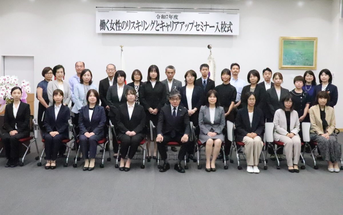 令和7年9月4日(木)、大村智記念学術館において、「働く女性のリスキリングとキャリアアップセミナー」の入校式を挙行し、20名の受講生が入校しました。
