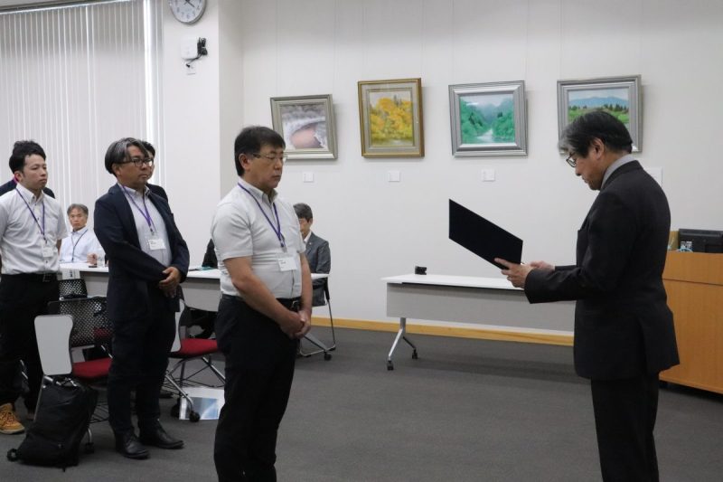 また、小林洋一山梨県産業政策部理事は「昨年11月、本県にカナデビア株式会社の水電解スタック量産工場の新設が決定した。技術力が高い企業や人材が集積する本県において、今後、同社との連携による新たな取引や経済効果が期待されている。県では本講座で習得した知識を実際の事業に生かしていただくため、本日から補助金の公募を開始した。事業展開の一助として積極的に活用いただきたい」と挨拶し、修了生の今後の活躍に期待を寄せました。