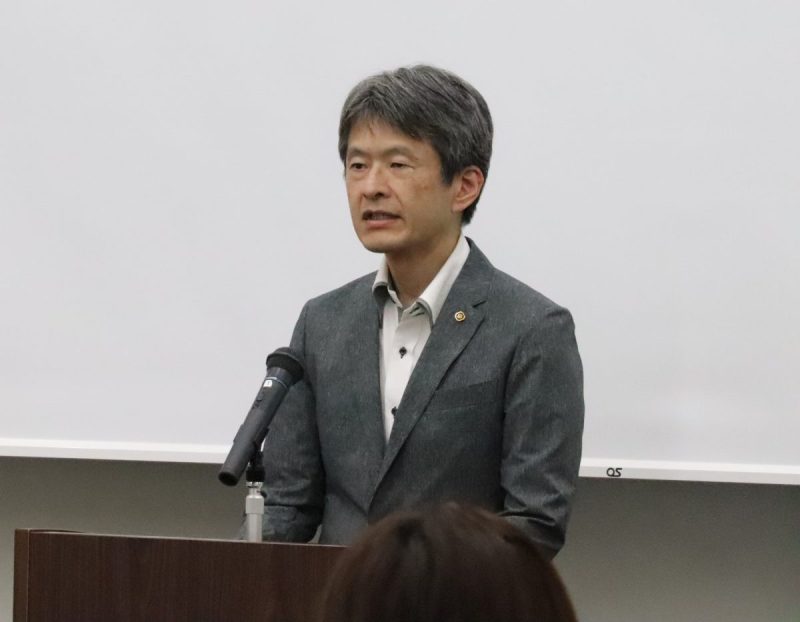 閉講式では、中村和彦学長が修了生に対し「水素社会構築のためには、高効率、高耐久、低コスト、規制見直しに代表される普及環境整備などまだまだ解決すべき課題があり、これからも産学官の連携が重要になってくる。本講座で習得した知識等を活用し、山梨県の発展のためにご尽力いただきたい」と述べました。